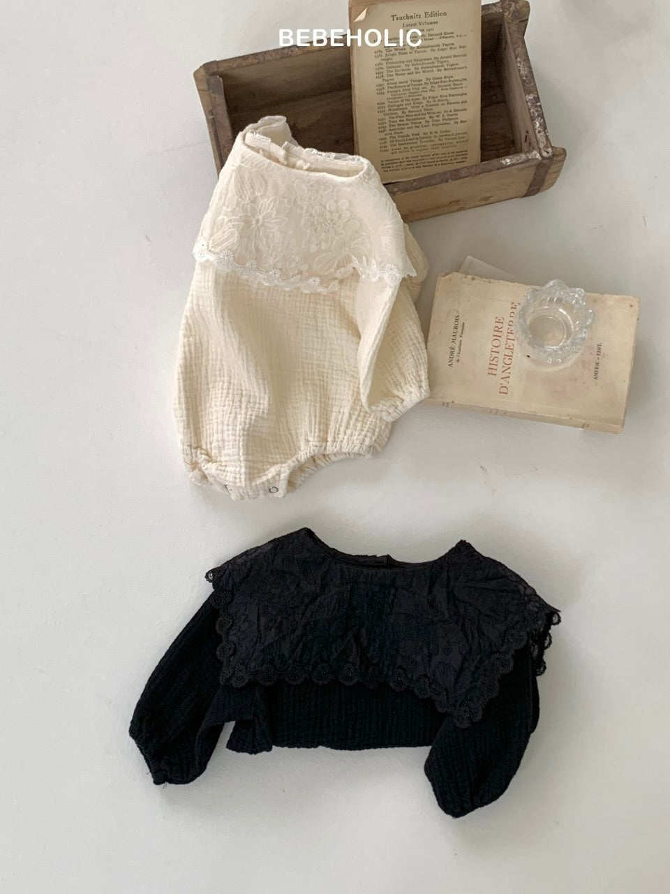 ぽこぽこっとしたテクスチャーが可愛いガーゼコットンのロンパース。