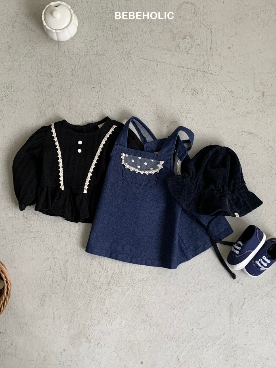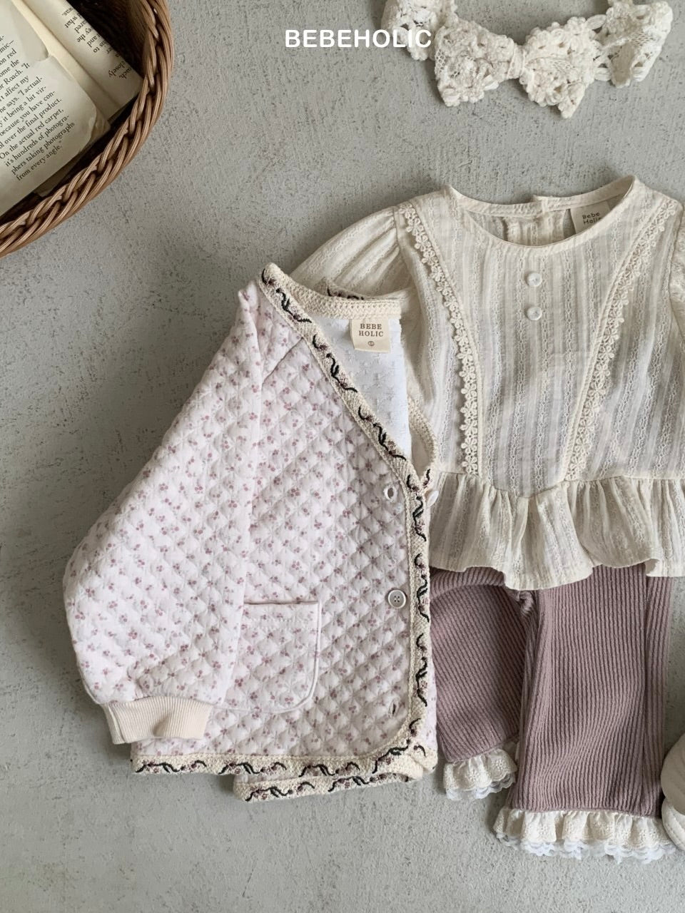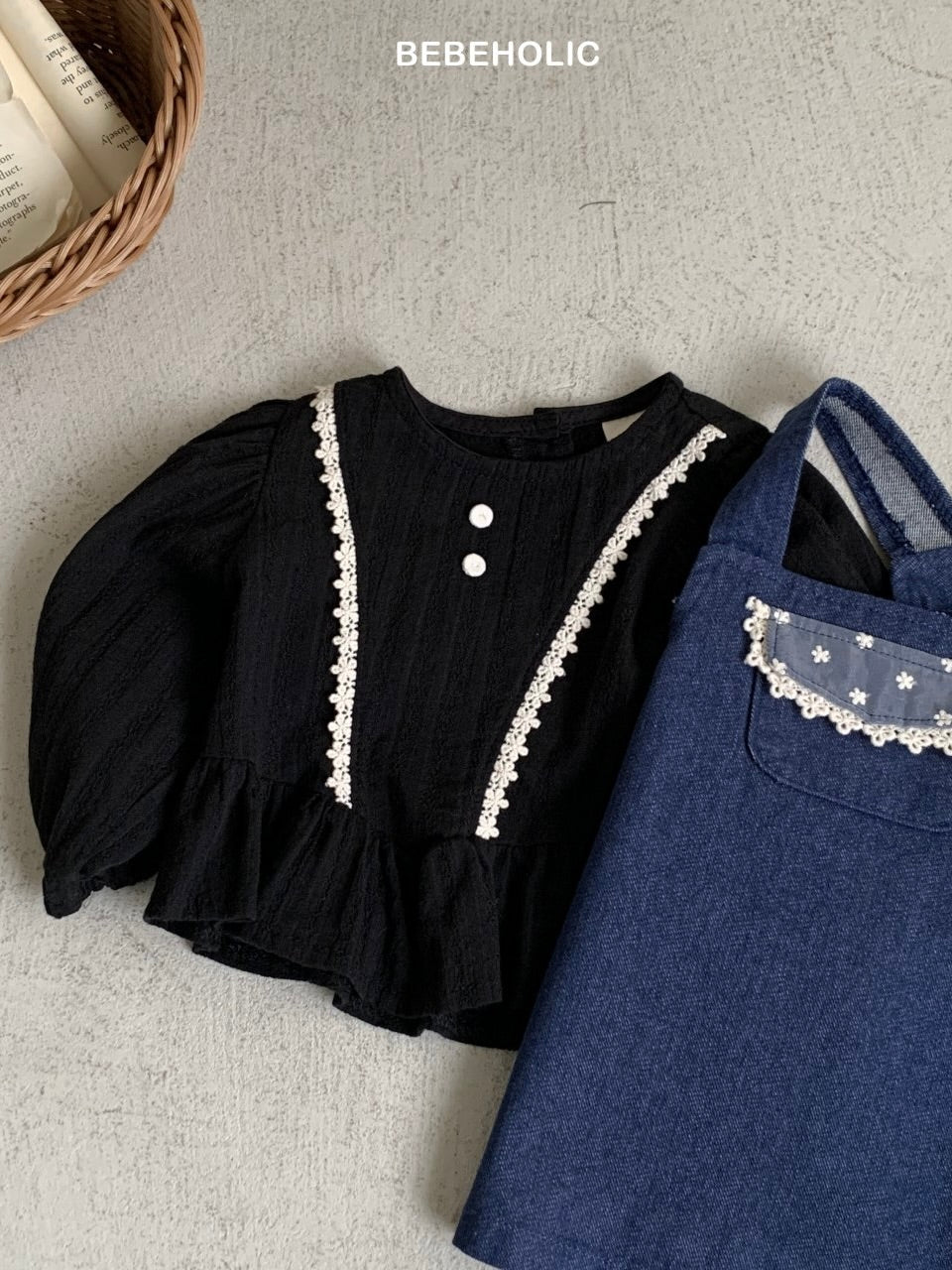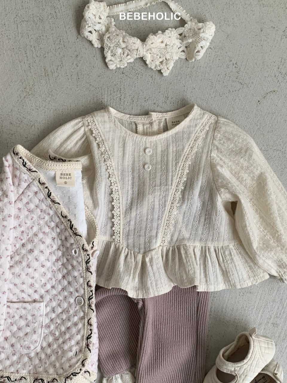 ふんわりとしたコットン素材に繊細なレースをあしらった、ペプラムブラウス。